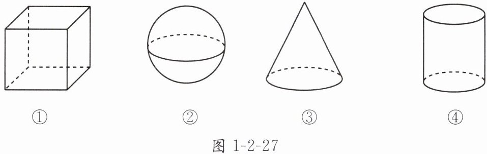 1. 在图1-2-27①②③④所示的四个几何体中,从正面、左面、上面看到的几何体的形状图都相同的有(