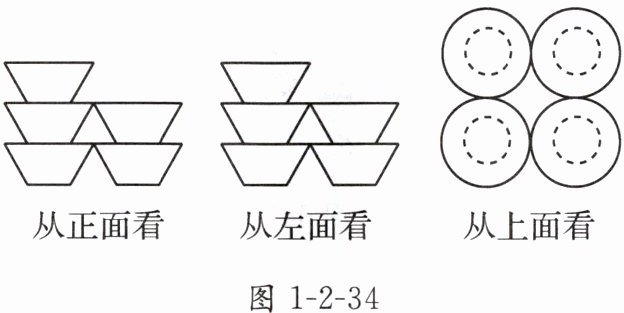 1. 学校超市货架上摆放着某品牌方便面,从正面、左面、上面看到的方便面形状图如图1-2-34,则该学校超市货架上的方便面至少有(