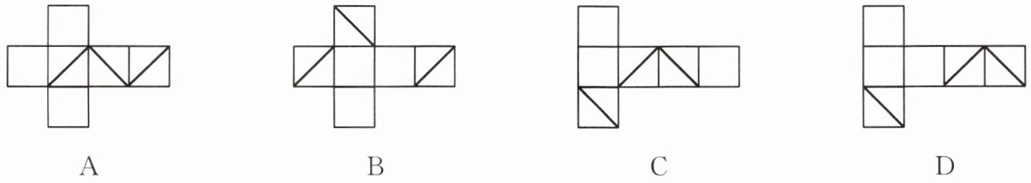 3. 如图 1 - 2 所示的正方体盒子的表面上画有 3 条粗黑线,将这个正方体盒子的表面展开(表面朝上),则其表面展开图可能是(