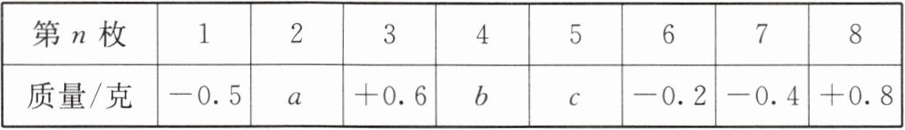 为了简化运算,乐乐选取了一个恰当的标准质量,依据这个标准质量,他把超出部分记为正,不足部分记为负,列出表格如表2-1-2(数据不完整)。