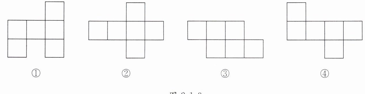 1. (1)小明要制作一个正方体,请你帮他从图2-1-3①②③④中选择一个,使它能折叠成正方体。你选择的是______。(填序号)