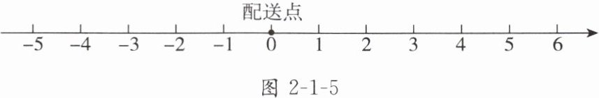 (1)以配送点为原点,以向东为正方向,向西为负方向,用$1个单位长度表示1km$,请你在数轴上(如图$2 - 1 - 5$)分别表示出$A$,$B$,$C$三地的位置。