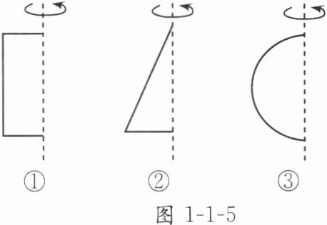 5. 写出图1-1-5给出的平面图形绕虚线旋转一周得到的几何体的名称。