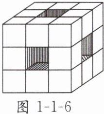 7. 如图1-1-6,把一个棱长为3的正方体的每个面等分成9个小正方形,然后沿每个面正中心的一个正方形向里挖空(相当于挖去了7个小正方体),所得到的几何体的表面积是多少?