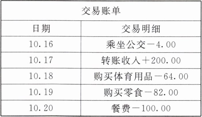4. 小明妈妈手机上的连续五笔交易如表 2-2-4,已知小明妈妈在这五笔交易之前的余额为 860 元,则这五笔交易后的余额为