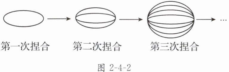 7. 你喜欢吃拉面吗?拉面馆的师傅用一根很粗的面条,把两头捏合在一起拉伸,再捏合,再拉伸,反复几次,就把这根很粗的面条拉成了许多根细的面条(如图2-4-2)。第一次捏合后,可以拉出2根面条;第二次捏合后,可以拉出4根面条;第三次捏合后,可以拉出8根面条;第四次捏合后,可以拉出
