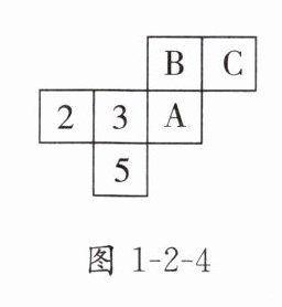 5. 图1-2-4是一个正方体的表面展开图,相对面上的数字之和都是10,则A,B,C三个方格中所填数字分别是