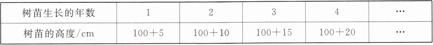 假设以后每年树苗的高度的变化规律与表中相同,请用含 $n$($n$ 为正整数)的代数式表示生长了 $n$ 年的树苗的高度: