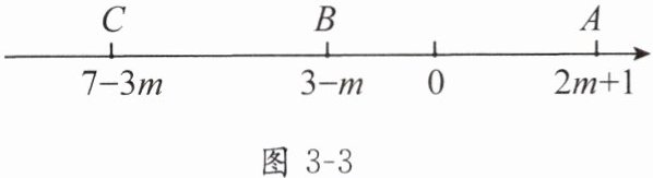 2. 如图 3-3,在一条数轴上,点 A,B,C 表示的数分别是 $2m + 1$,$3 - m$,$7 - 3m$。