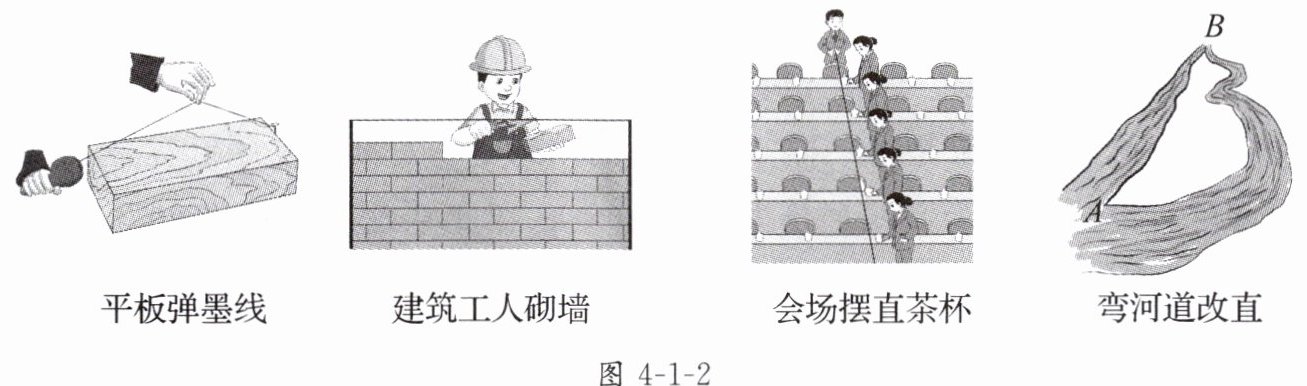 3. 如图4-1-2,在下列生活、生产现象中,不可以用基本事实“两点确定一条直线”来解释的有