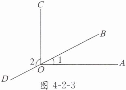 6. 如图4-2-3所示,$\angle 1= 28^{\circ}$,$\angle AOC= 90^{\circ}$,点B,O,D在同一条直线上,求$\angle 2$的度数。