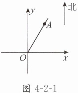 2. 如图4-2-1,射线OA的方向是北偏东$30^{\circ}$,在同一平面内$\angle AOB= 70^{\circ}$,则射线OB的方向是(
