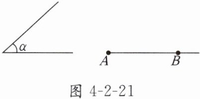 8. 如图4-2-21,已知$∠α$,射线$AB$,请用尺规作图的方法以点$A$为顶点,作$∠CAB$,使$∠CAB= 2∠α$。(要求:尺规作图,不写作法,保留作图痕迹)