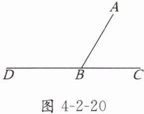 7. 如图4-2-20,已知$∠ABC$,点$D$,$B$,$C$在同一条直线上,在直线$CD上方作∠DBE$,使$∠DBE= ∠ABC$。(要求:尺规作图,不写作法,保留作图痕迹)