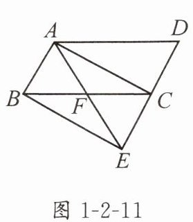4. 如图 1-2-11,将平行四边形 $ABCD$ 的边 $DC$ 延长到点 $E$,使 $CE = CD$,连接 $AE$ 交 $BC$ 于点 $F$,连接 $BE$,$\angle AFC = n\angle D$,当 $n=$