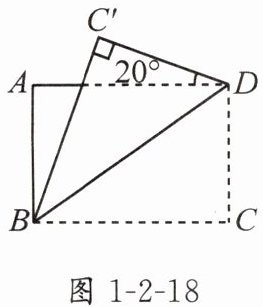 4. 如图1 - 2 - 18,在矩形ABCD中,将△BCD沿对角线BD折叠,记点C的对应点为C',若∠ADC' = 20°,则∠BDC的度数为(