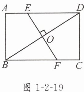 5. 如图1 - 2 - 19,在矩形ABCD中,AB = 6 cm,AD = 8 cm,过对角线BD的中点O作BD的垂直平分线EF,分别交AD,BC于点E,F,则AE的长为