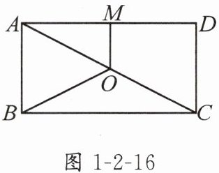 2. 如图1 - 2 - 16,O是矩形ABCD的对角线AC的中点,M是AD的中点,若AB = 5,AD = 12,则OM + OB的长为(