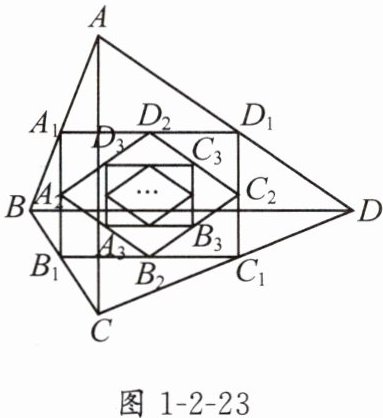 3. 如图1 - 2 - 23,四边形ABCD中,AC = 6,BD = 8,且AC⊥BD. 顺次连接四边形ABCD各边中点,得到四边形A₁B₁C₁D₁;再顺次连接四边形A₁B₁C₁D₁各边中点,得到四边形A₂B₂C₂D₂……如此进行下去得到四边形AₙBₙCₙDₙ.