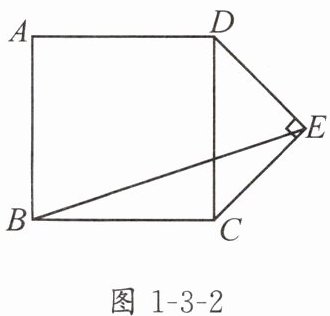 5. 如图 1 - 3 - 2,在正方形 $ABCD$ 中,$AB = 2$.若以 $CD$ 边为底边向正方形 $ABCD$ 外作等腰直角三角形 $DCE$,连接 $BE$,则 $BE$ 的长为