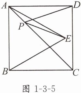 2. 如图 1 - 3 - 5,正方形 $ABCD$ 的面积为 $12$,$\triangle ABE$ 是等边三角形,点 $E$ 在正方形 $ABCD$ 内,在对角线 $AC$ 上有一点 $P$,使 $PD + PE$ 最小,则这个最小值为