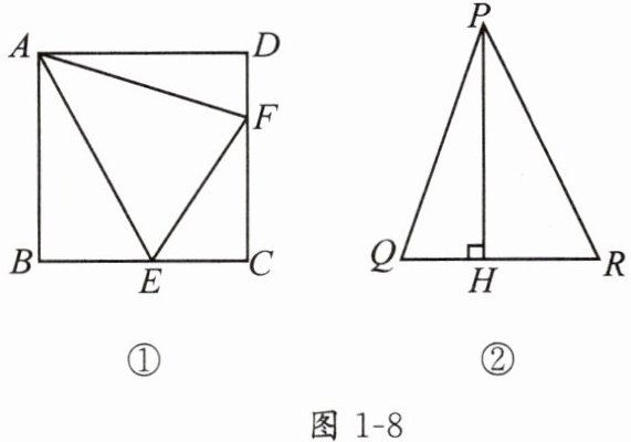 (3)如图1-8②,在 $\triangle PQR$ 中,$\angle QPR = 45^{\circ}$,高 $PH = 5$,$QH = 2$,则 $HR$ 的长为