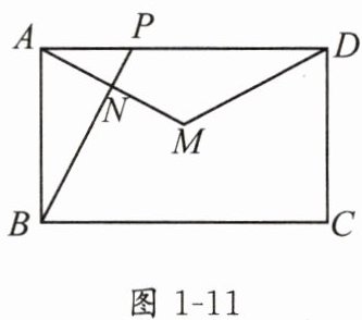 ;②如图1-11,连接 $AM$ 交 $BP$ 于点 $N$,连接 $DM$,当 $\triangle AMD$ 是等腰三角形时,直接写出 $AN$ 的长.