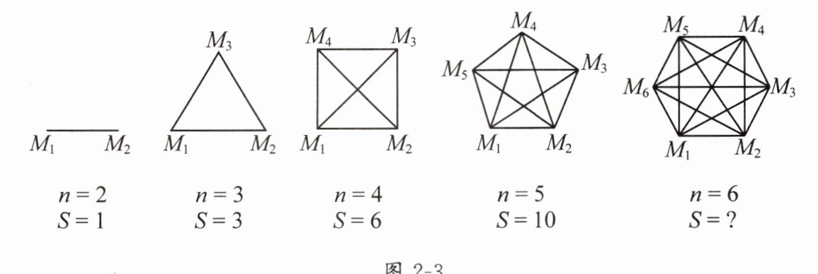 【模型构建】用点 $ M_{1} $,$ M_{2} $,$ M_{3} $,$\cdots$,$ M_{50} $ 分别表示第 $ 1 $,$ 2 $,$ 3 $,$\cdots$,$ 50 $ 名同学,把该班人数 $ n $ 与通视频电话次数 $ S $ 之间的关系用如图 2 - 3 所示的模型表示.