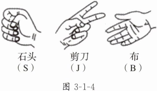 5. 如图 3 - 1 - 4,小明和小亮两人玩“石头、剪刀、布”的游戏,游戏规则为:石头胜剪刀,剪刀胜布,布胜石头,相同则不分胜负.