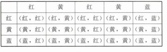 解:如答表3 - 1 - 4,因为一共有15种等可能的结果,配成紫色的结果有3种,