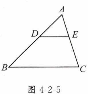 5. 如图 4-2-5,在 $ \triangle ABC $ 中,$ DE // BC $,$ DE $ 与 $ AB $ 相交于点 $ D $,与 $ AC $ 相交于点 $ E $,如果 $ AD = 3 $,$ BD = 4 $,$ AE = 2 $,那么 $ AC = $