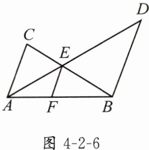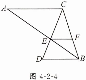 4. 如图 4-2-4,$ AB $ 与 $ CD $ 相交于点 $ E $,点 $ F $ 在线段 $ BC $ 上,且 $ AC // EF $.若 $ BE = 5 $,$ BF = 3 $,$ AE = BC $,则 $ AE = $