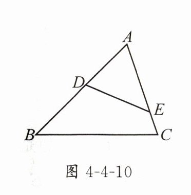 2. 如图4-4-10,$\frac{AD}{AC} = \frac{AE}{AB}$,若$AD = 3$,$AC = 6$,$DE = 4$,则$BC =$