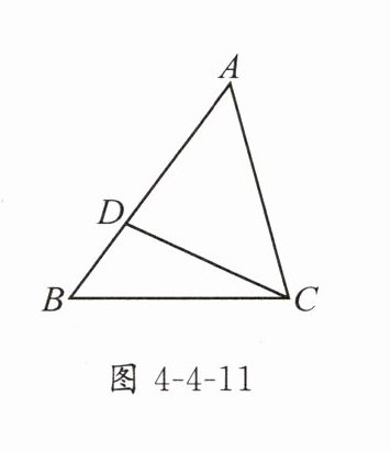 3. 如图4-4-11,$D$是$\triangle ABC$的边$AB$上一点。请添加一个条件: