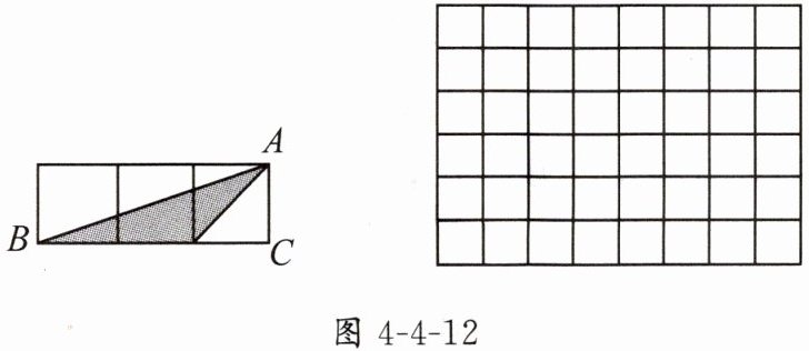4. 如图4-4-12,小正方形的边长均为1,请在网格纸上画一个三角形,三个顶点都在格点上,且与$\triangle ABC$相似。(至少画出2种)