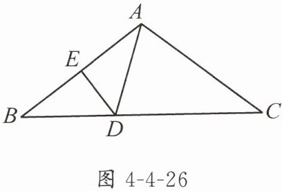 3. 如图4-4-26,在$\triangle ABC$中,$AB = AC$,$\angle BAC = 108^{\circ}$,$AB$的垂直平分线与$BC$交于点$D$,交$AB$于点$E$.