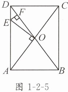 1. 如图 1 - 2 - 5,矩形 $ABCD$ 的对角线 $AC$,$BD$ 交于点 $O$,$AB = 6$,$BC = 8$,过点 $O$ 作 $OE\perp AC$,交 $AD$ 于点 $E$,过点 $E$ 作 $EF\perp BD$,垂足为 $F$,则 $OE + EF$ 的值为