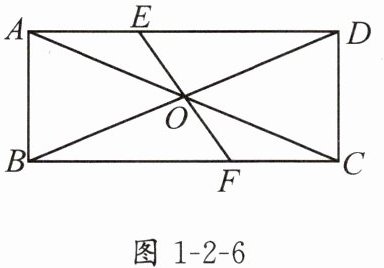 2. 如图 1 - 2 - 6,在矩形 $ABCD$ 中,对角线 $AC$,$BD$ 相交于点 $O$,经过点 $O$ 的任意一条直线分别交 $AD$,$BC$ 于点 $E$,$F$.