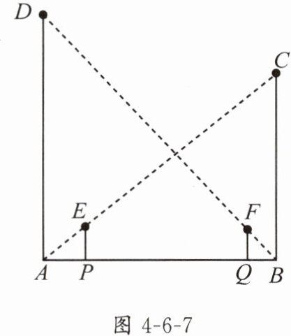 2. 如图4-6-7,D,C为两路灯,身高相同的小明、小亮站在两路灯杆AD,BC之间,两人相距6.5m,小明站在P处,小亮站在Q处,小明在路灯C下的影长为2m,已知小明身高1.8m,路灯杆BC高9m.小明在路灯C下的影子顶部恰好位于路灯D的正下方,小亮在路灯D下的影子顶部恰好位于路灯C的正下方.