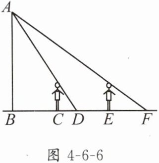1. 如图4-6-6,王华晚上由路灯A下的B处走到C处时,测得影子CD的长为1m,继续往前走3m到达E处时,影子EF的长为2m,已知王华的身高是1.5m,那么路灯A的高度AB为