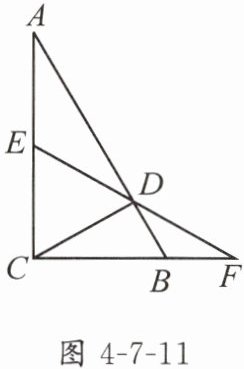 2. 如图4-7-11,在$\triangle ABC$中,$\angle ACB = 90^{\circ}$,$CD \perp AB$,垂足为点$D$,$E$是$AC$的中点,$ED$的延长线与$CB$的延长线交于点$F$.