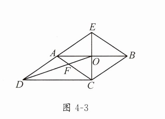 6. 如图 4 - 3,$ CE $ 是平行四边形 $ ABCD $ 的边 $ AB $ 的垂直平分线,垂足为点 $ O $,$ CE $ 与 $ DA $ 的延长线交于点 $ E $. 连接 $ AC $,$ BE $,$ DO $,$ DO $ 与 $ AC $ 交于点 $ F $,给出下列结论:① 四边形 $ ACBE $ 是菱形;② $ \angle ACD = \angle BAE $;③ $ AF : BE = 2 : 3 $;④ $ S_{四边形AFOE} : S_{\triangle COD} = 2 : 3 $. 其中正确的结论有.(填序号)