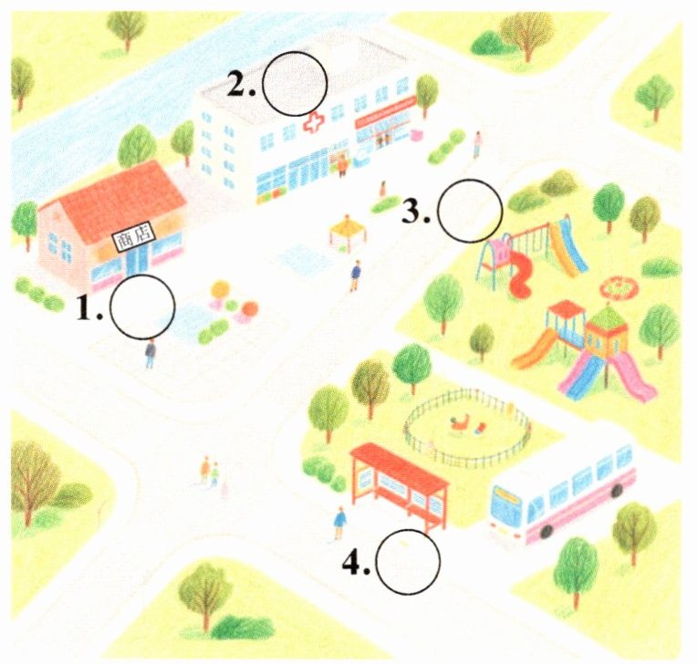 三、给图中的地点选择相符的句子,将其序号填在对应的圆圈内。