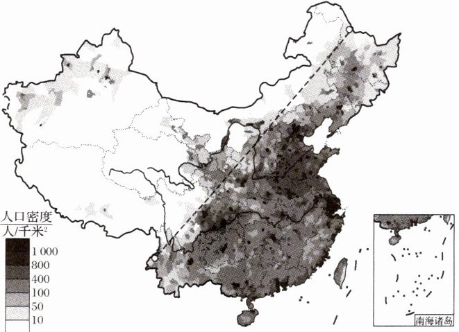 发现:我国人口分布特点是人口分布______,东南部人口密度___,西北部人口密度___。