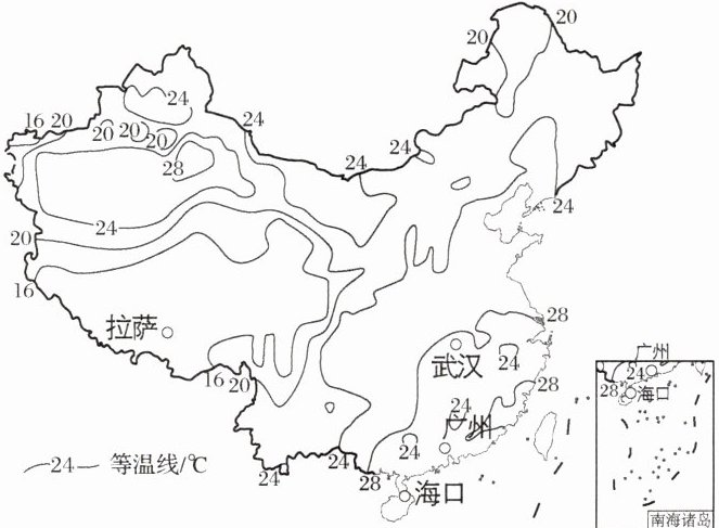 跟踪训练1 读我国7月等温线分布图,完成下列各题。