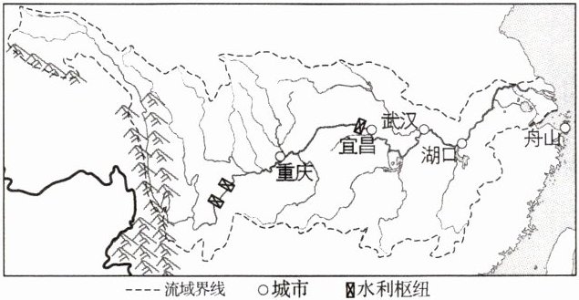 江海直达是指货物不经中转,由一艘船完成江河与海洋运输的运输方式。2024年5月11日,从浙江舟山港出发的万吨级货轮“创新5”号成功抵达重庆,标志着长江上游首条江海直达航线首航成功。读长江流域示意图,完成5~6题。