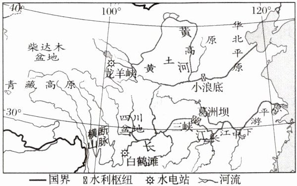 读长江、黄河流域部分水利枢纽(水电站)分布示意图,完成7~8题。