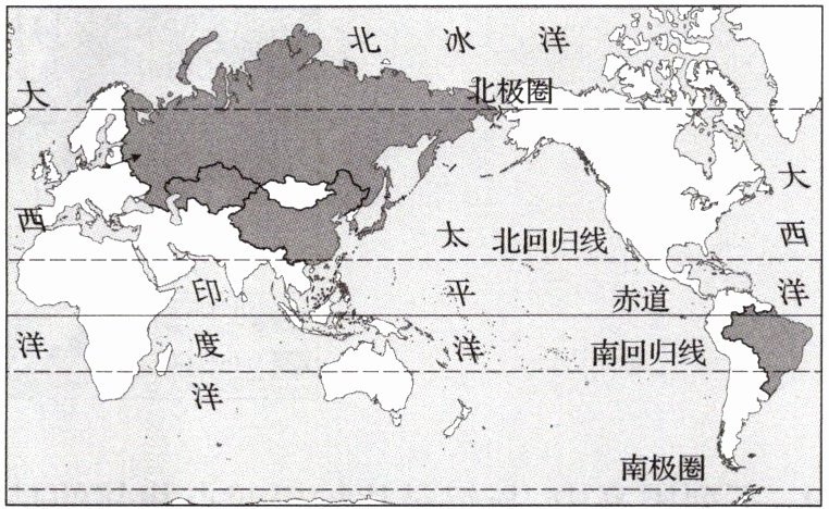 ①我国东临太平洋 ②我国东西跨经度超过60° ③我国南北跨纬度近50° ④我国南部有北回归线穿过 ⑤我国南部部分地区位于热带 ⑥我国东西端存在时间的差异 ⑦我国南北部气候差异很大 ⑧我国东部雨量充沛,气候湿润