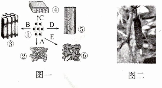 31. 图一是植物的几种主要组织,图二是黄瓜的植株部分,请据图回答下列问题。