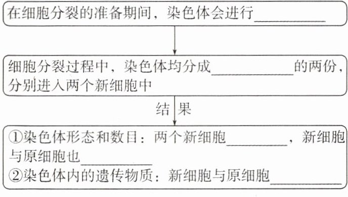 细胞分裂过程中,染色体均分成______的两份,分别进入两个新细胞中